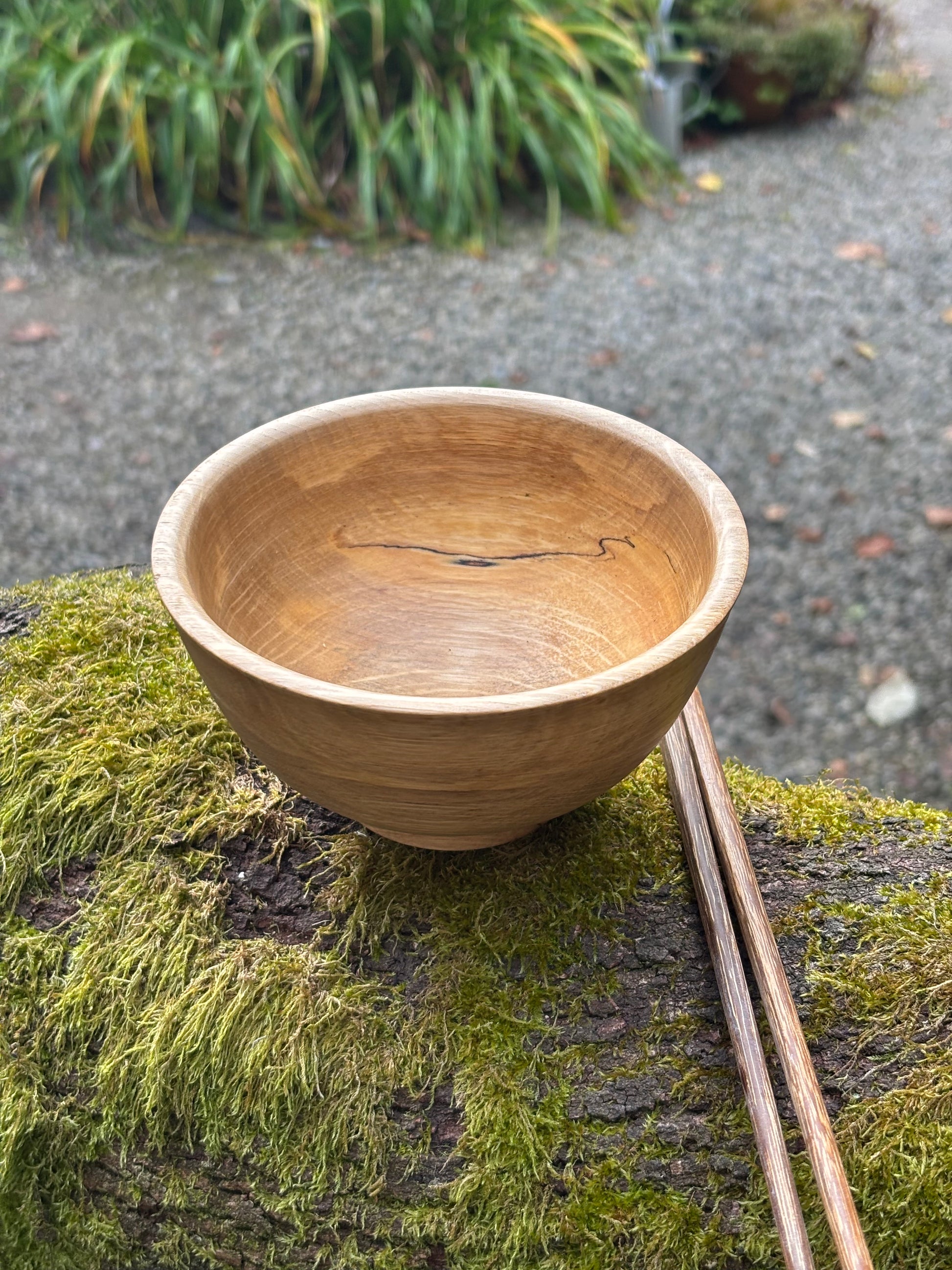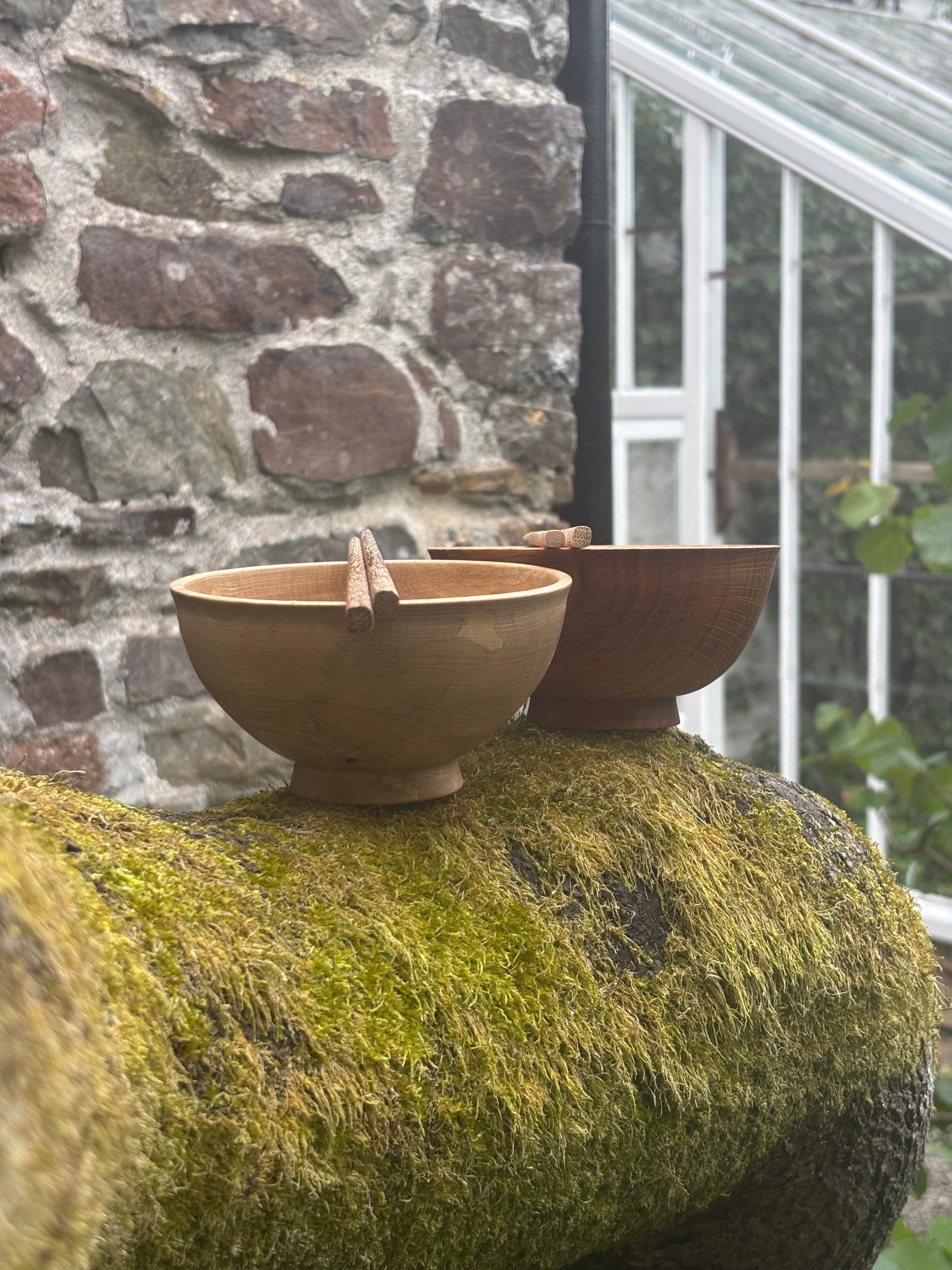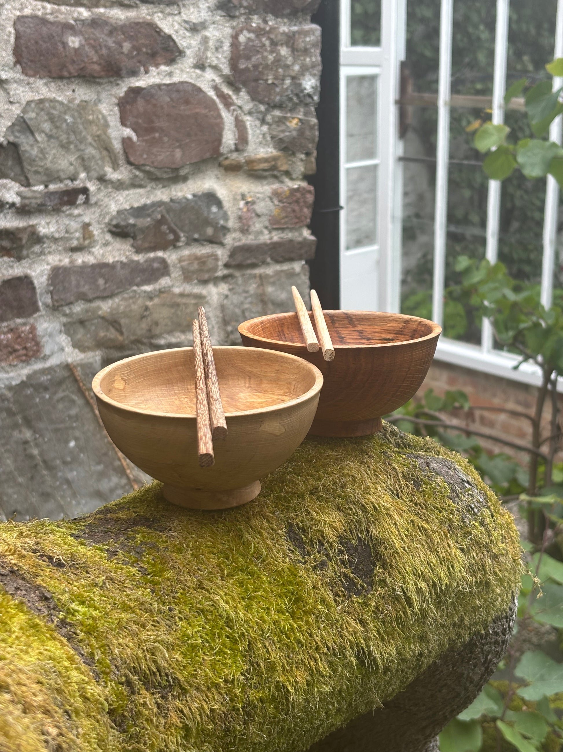 Enjoy your favourite Rice dishes in this handcrafted Beech Rice bowl with Chopsticks. Turned from a single piece of windfall Beech, sustainably sourced from the Historic Clovelly Estate, each bowl is smooth, tactile, and full of natural character.