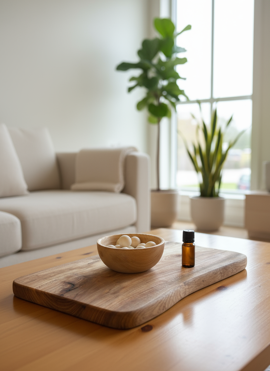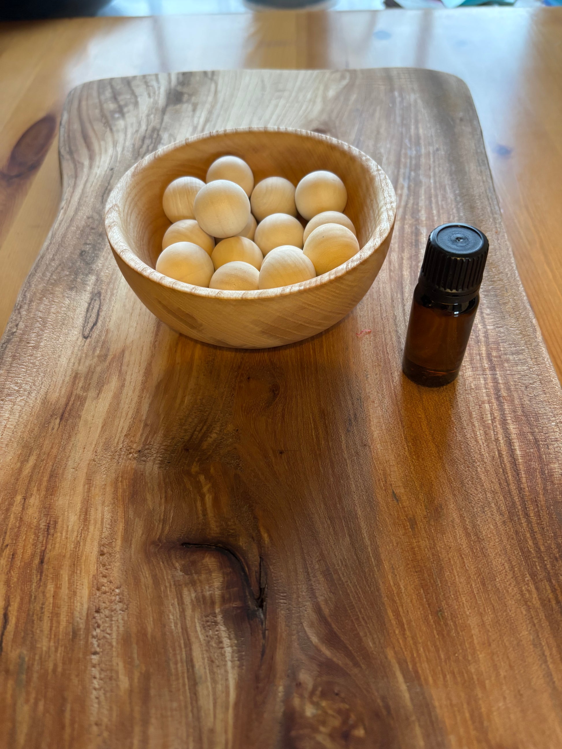 Simply place the wooden balls in the bowl, add a few drops of the infused oil, and allow the wood to absorb and slowly diffuse the scent. The fragrance can be refreshed as often as you like.
